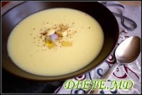 3. Când este gata fiartă, conopida se scurge de apa și se pune în blender împreună cu laptele, sarea, ceapa și usturoiul prăjite, piperul și ceapa verde.