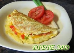 3. Când omleta este parțial închegată, presărați brânza pe jumătate din suprafață, apoi îndoiți-o.